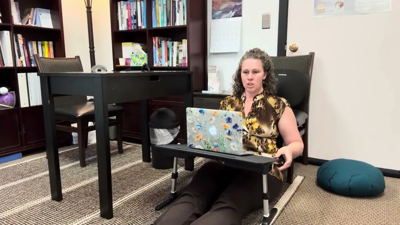 In my own office, I work long shifts twice a week. I wanted something that would allow me to work productively while also encouraging movement. So I added two items: a buckwheat-filled cushion and a portable floor desk. Both together make Floor Sitting comfortable, flexible, and practical for long sessions.